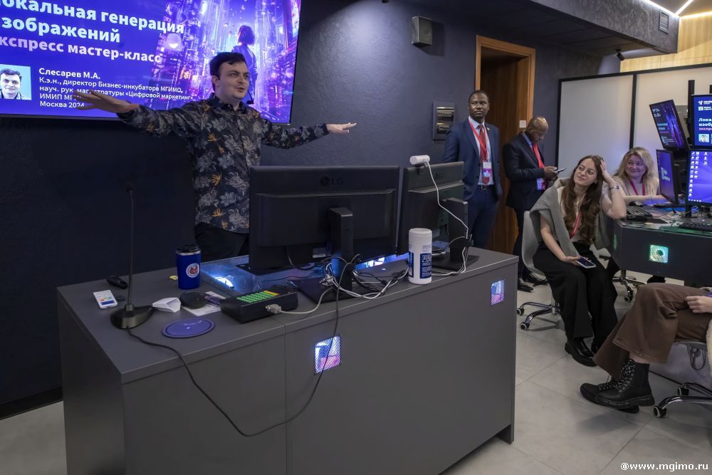 Мощные компьютеры Центра используются для проведения новых цифровых дисциплин на прикладных магистратурах ИМИП, включая промпт-инжиниринг и работу с нейросетями, цифровой дизайн, Python для маркетологов, прототипирование чат-ботов и даже разработку современных компьютерных игр на движке Unreal Engine 5.